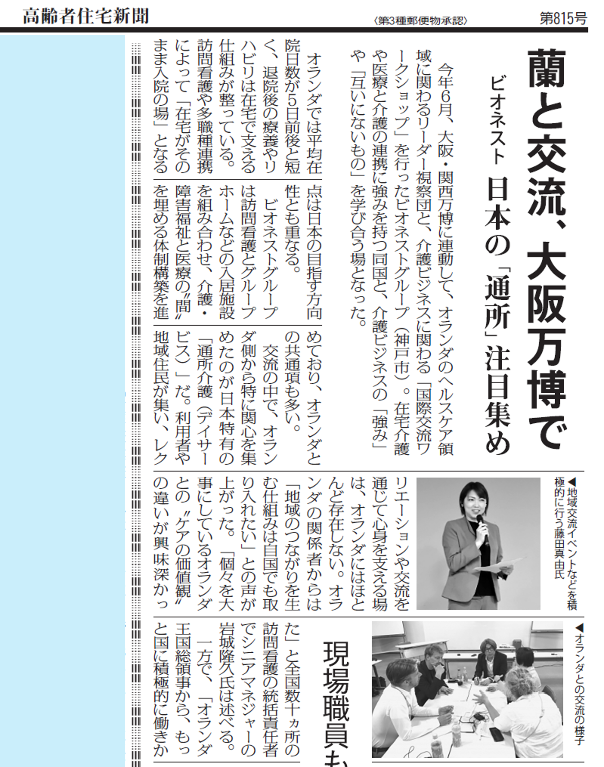 ビオネストGの取り組みが「高齢者住宅新聞」に掲載されました。