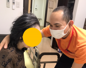彼ら二人に話を聴くと「サポートしてご利用者から『ありがとう』と言われるのが、やりがいにつながる(ボーさん)」「ご利用者と話をすることが楽しい!(ロアンさん)」「将来は日本とミャンマーを行き来して国際介護士になりたい(ボーさん)」「この技術が自分の両親のお世話にも活かせるはず!(ロアンさん)」など前向きで、こちらが笑顔に言葉があふれておりました。